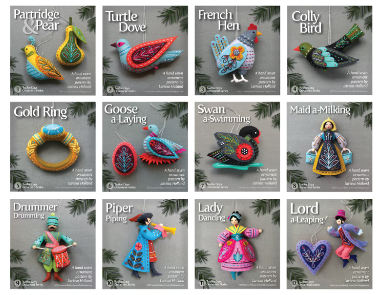 Sewn by hand and made with wool felt and love, the series consists of twelve patterns creating a total of fifteen ornaments. Larissa’s designs are deliciously intricate and elaborate yet come with instructions that are easy to follow and re-create.